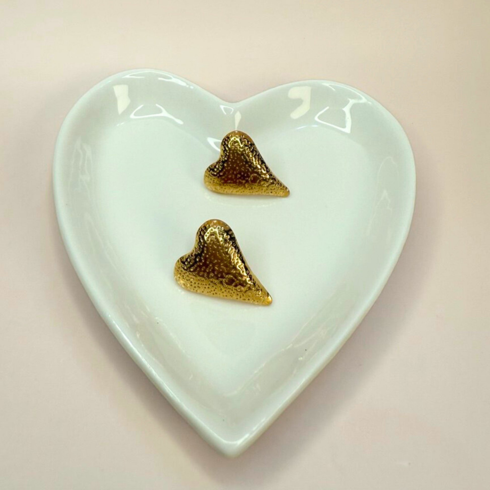 Elevate your everyday look with a hint of handcrafted charm. These delicate heart earrings showcase a beautiful hammered-like texture, giving them a rustic yet elegant feel. Wear them as a reminder of love and grace.
