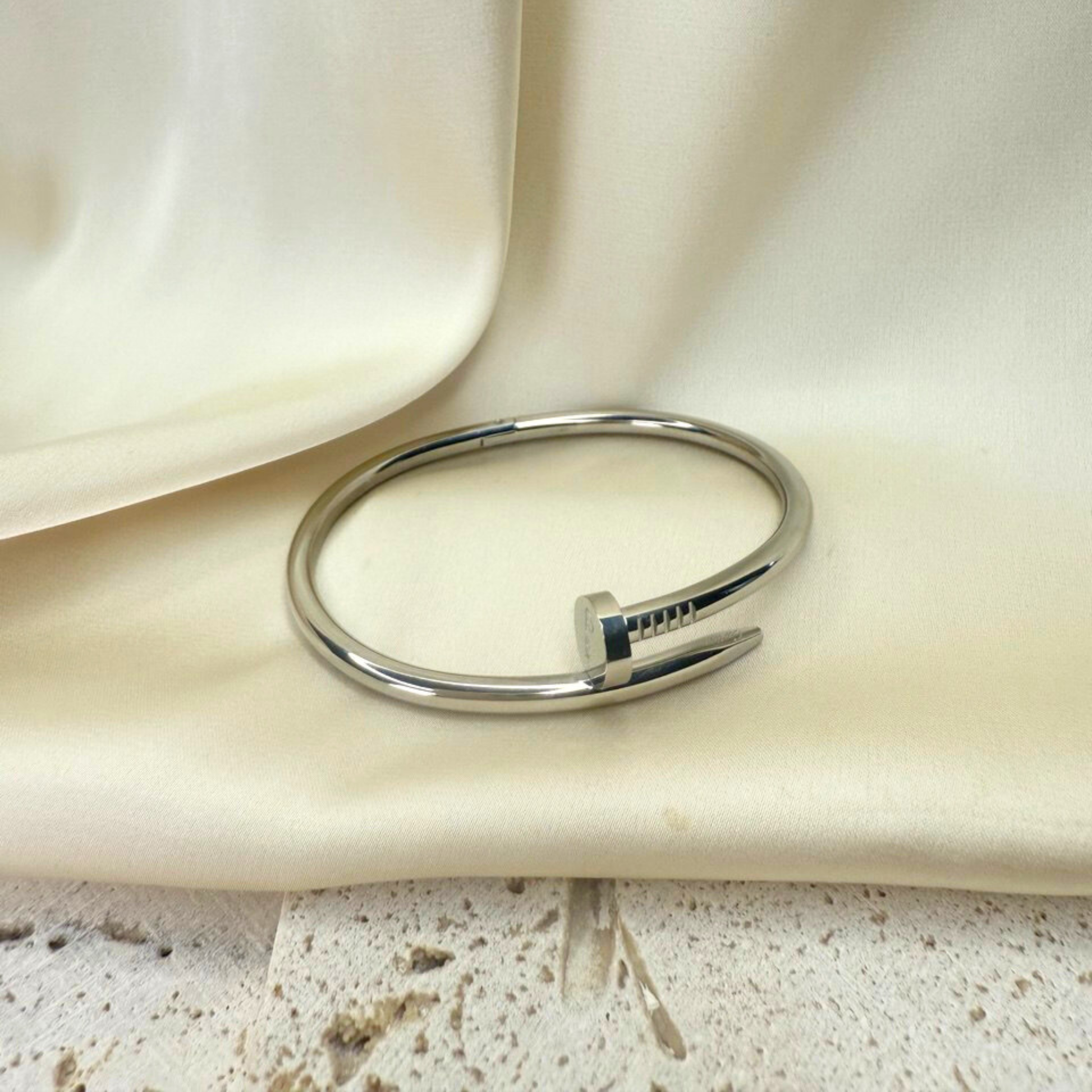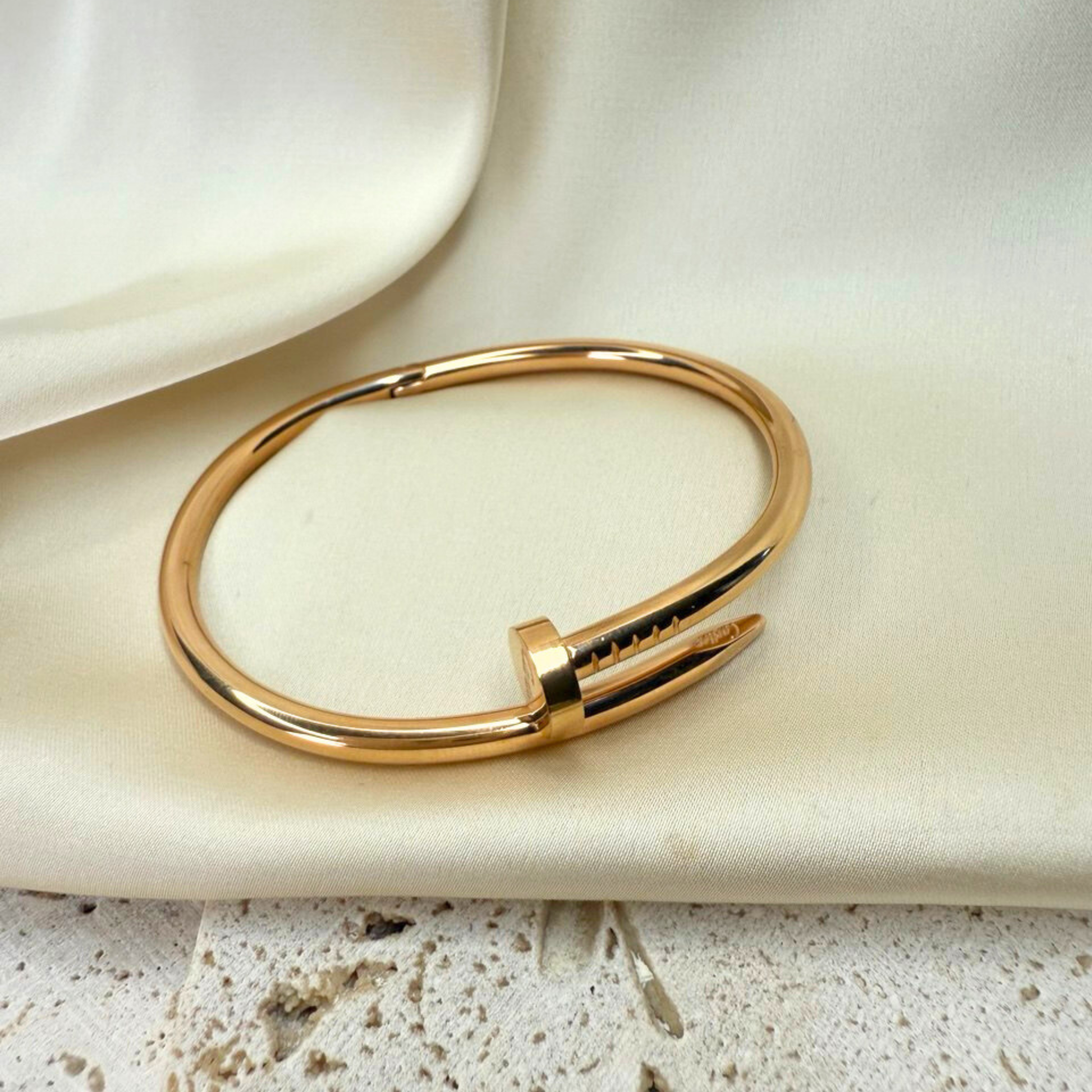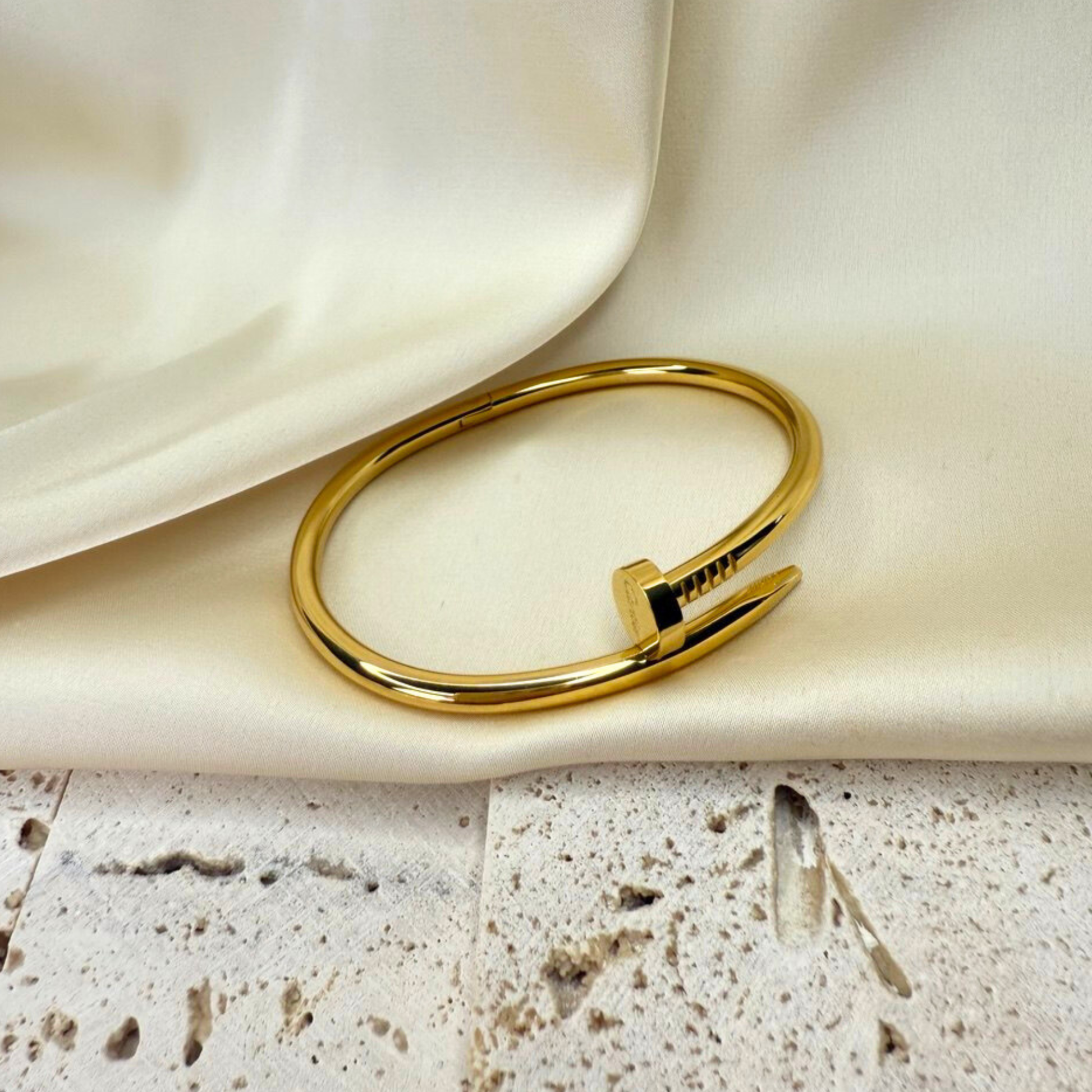 Bold and unconventional. This unique gold-tone Stainless Steel bangle wraps elegantly around the wrist, sculpted into the distinct form of a nail. A high-fashion, tarnish-resistant piece that symbolizes individuality and strength.