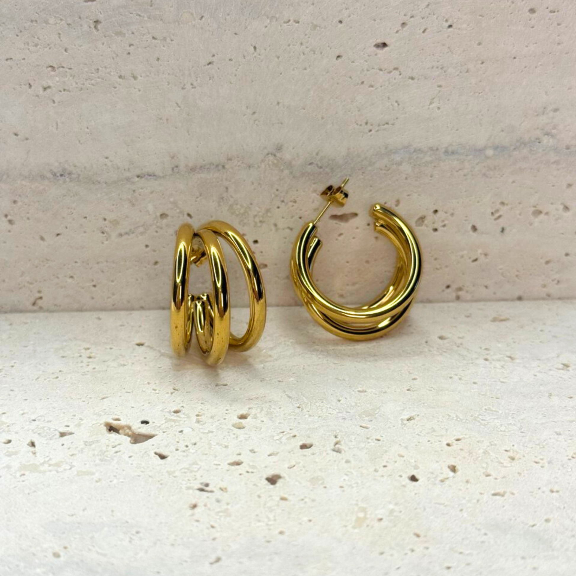 A splash of Mediterranean elegance. These stunning statement earrings feature a duo of vibrant teal-blue crystals in rectangular and oval cuts. Set in high-polish gold-toned Stainless Steel, they are waterproof, tarnish-resistant, and designed to turn heads while providing a comfortable, hypoallergenic fit.