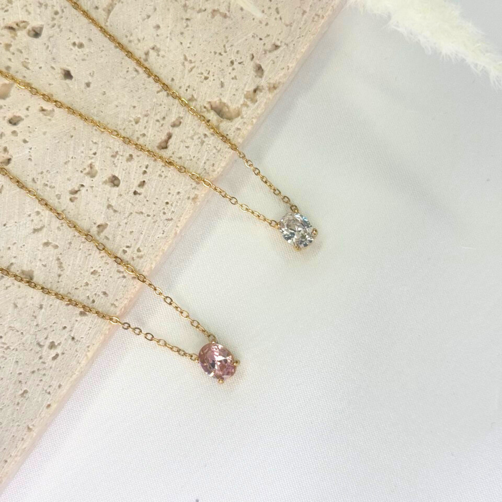 Understated elegance, lasting quality. This delicate gold-toned Stainless Steel necklace features a single, brilliant oval CZ stone set in a minimalist four-prong setting. Perfect for adding a touch of classic sparkle to your everyday look.